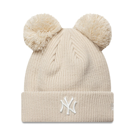 New York Yankees beanie, double pom, women, plain, New Era, beige